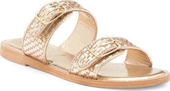 A woven texture brings visual intrigue to the strappy upper of this easygoing slide that's a perfect refresh to your warm-weather selection.