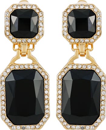 A halo of bright-white crystals amplify the striking appearance of drop earrings fashioned with clip-on backs for easy wear.