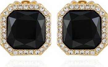 A bright-white halo contrasts against the inky crystal center of stud earrings done in a high-shine finish to illuminate your stack.