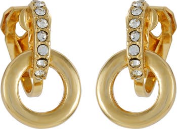 Clip-on posts allow versatile styling of these polished drop earrings adorned with bright-white crystals to illuminate your stack.