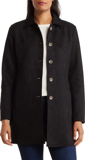 Elevate your commute with this soft faux suede car coat constructed with handy pockets and a long silhouette for essential style.