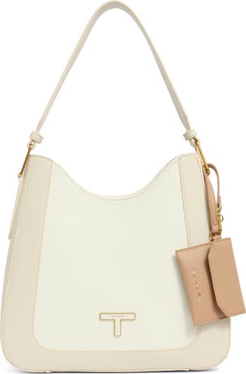 Perfectly sized to hold all of your essentials, this pebbled faux-leather shoulder bag features a monogram hardware accent and optional pouch for organization.