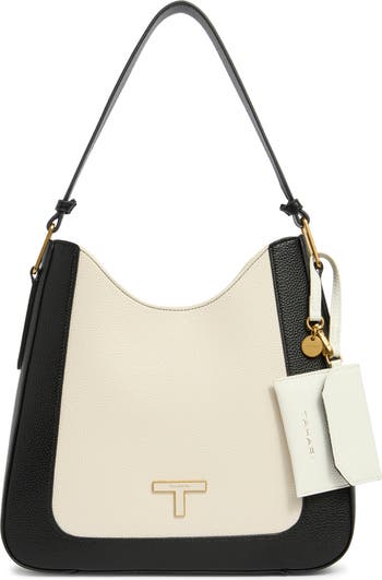 Perfectly sized to hold all of your essentials, this pebbled faux-leather shoulder bag features a monogram hardware accent and optional pouch for organization.