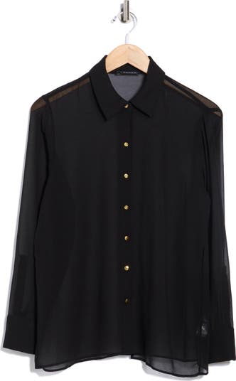 Gleaming buttons add party-ready sparkle to this flowy chiffon button-up shirt.