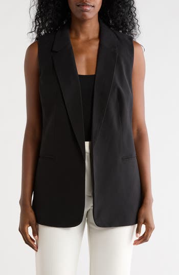 Polish your workday look with this longline vest framed by notched lapels and sleek welt pockets.