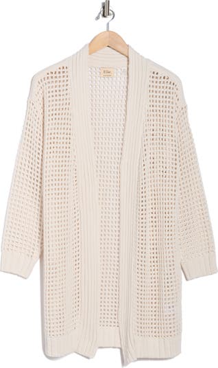 A lightweight layering piece, this open-stitched cardigan is knit in a longline silhouette from soft cotton-blend yarns.