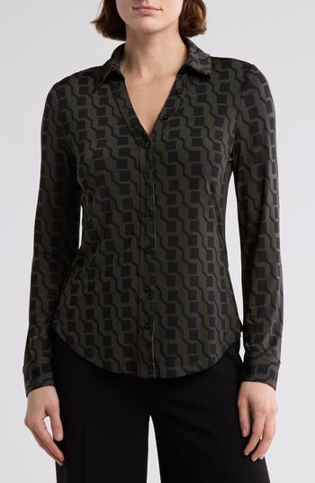 • MAX STUDIO Satin Tie Neck Button-Up Shirt