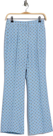 A geometric tile print brings a contemporary aesthetic to these high-waisted pants cut in a wide-leg silhouette.