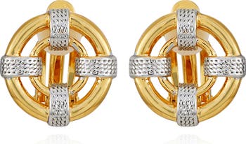 Dual textures and a striking two-tone finish bring visual interest to stud earrings done in a clip-on silhouette for versatile styling options.