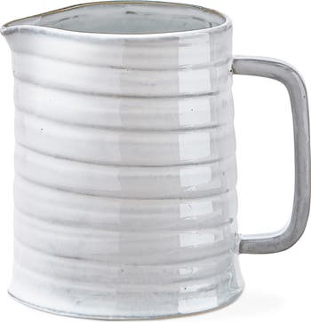 Serve your favorite homemade beverages from this farmhouse-style stoneware milk pitcher featuring a two-tone hue and ribbed texture.