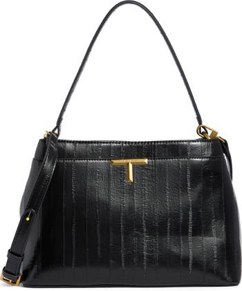Gleaming 'T' hardware brings brand sophistication to this sleek faux-leather satchel designed with two strap options for carrying versatility.