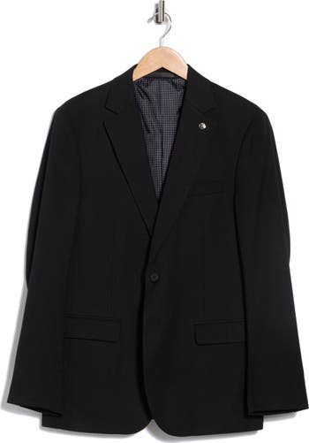 A textured weave and sharp tailoring define this slim-fit blazer finished with notched lapels and ample pockets.