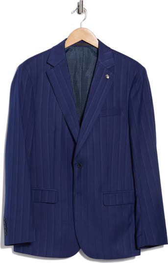 A striped weave and sharp tailoring define this slim-fit blazer finished with notched lapels and ample pockets.