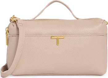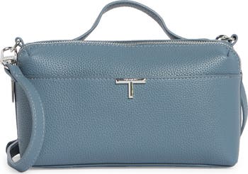 This unusual crossbody wallet also comes with a top handle for another versatile carry option in addition to the removable, adjustable strap. Designed with a pebbled texture, this piece includes an easy exterior slip pocket for easily stashing small things while on the go.