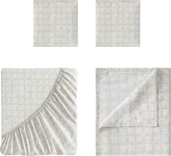 - Queen set includes flat sheet, fitted sheet and four pillowcases