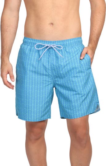 Brave the waves or soak up the sun in these whimsically patterned swim trunks cut from quick-drying fabric and equipped with a compression liner. A drawstring secures the prefect fit in a stay-put elastic waistband and handy pockets keep your treasures secure.