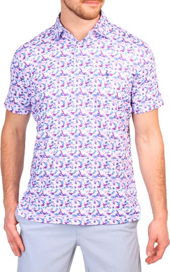 Go from the clubhouse to the fairway in this bird print polo constructed from moisture-wicking, UPF 30+ fabric enhanced with comfortable stretch and a wrinkle-resistant finish.