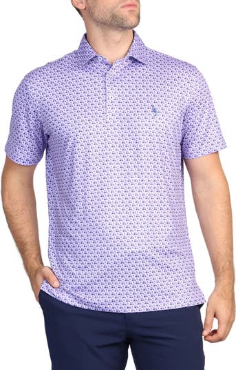Enjoy a day on the green in this golf carts printed performance polo constructed from moisture-wicking UPF 30+ fabric with comfortable stretch.