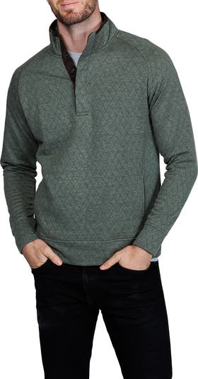 Diamond-stitched quilting enhances the comfort of this raglan-sleeve pullover framed by a stand collar with a snap half placket and handy side pockets.