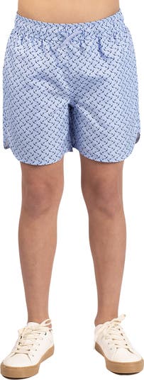 They'll move comfortably from sand to surf in these moisture-wicking swim trunks built with sun protection and covered in a bold anchor print.