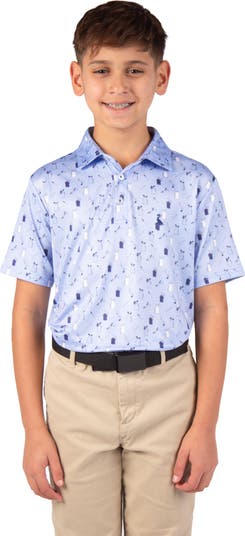 Printed performance fabric delivers sporty comfort to this kid-approved polo constructed from moisture-wicking, UPF 30+ fabric enhanced with comfortable stretch.