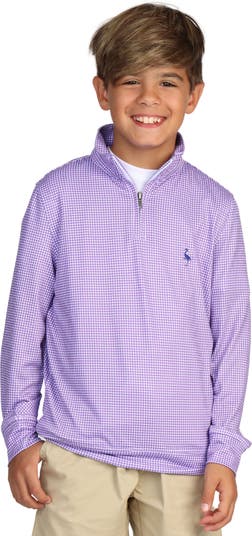 A houndstooth pattern defines this quarter-zip pullover that's cut from moisture-wicking fabric and backed with UPF 30+ sun protection to keep them comfy no matter the season.