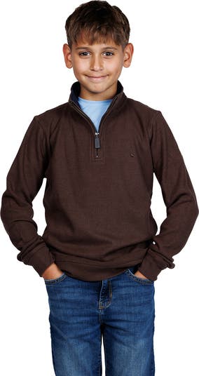 They'll conquer the day in this cozy knit quarter-zip pullover featuring a flamingo embroidered at the chest for a touch of brand style
