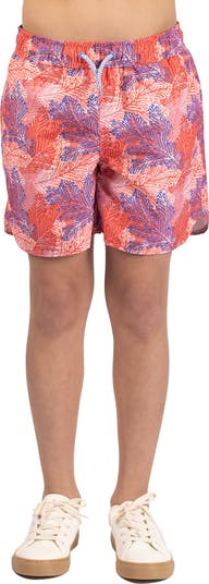 They'll move comfortably from sand to surf in these moisture-wicking swim trunks built with sun protection and covered in a bold tropical leaves print.