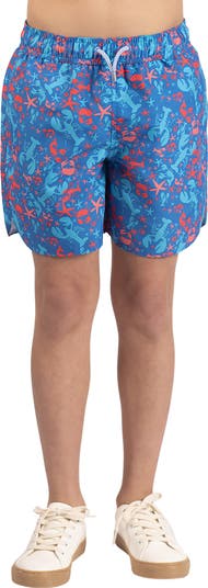 They'll move comfortably from sand to surf in these moisture-wicking swim trunks built with sun protection and covered in a bold lobster print.