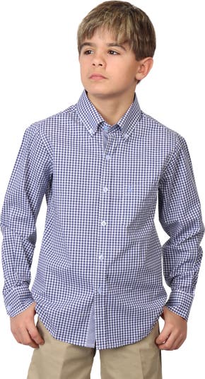 They'll conquer the day in comfort with this button-up shirt cut from stretch-enhanced cotton and finished with a flamingo embroidered at the chest for a touch of brand style.