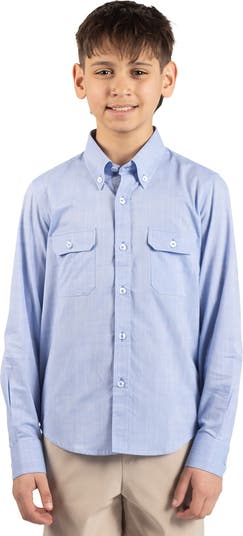 Get them dressed up in a dash with this button-down shirt cut from soft cotton chambray fabric and finished with an embroidered signature Byrd logo.