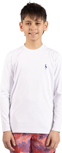 They'll surf, swim and stay shielded in this long-sleeve rashguard cut from four-way-stretch fabric, moisture-wicking fabric.