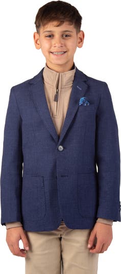 A softly slubbed fabric brings bold versatility to this kid-sized sport coat that's ideal for elevating their sporty-casual looks.