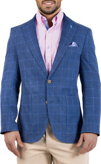 This melange yarn-dyed two-button sport coat features a boldly patterned lining that matches the handkerchief and the brand's signature Flamingo lapel pin, adding striking personality to your sharp look.