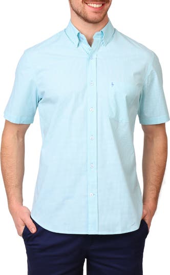 Stretchy cotton and a micro gingham weave give this short-sleeve button-up shirt a refined, polished look that's ready for any occasion.