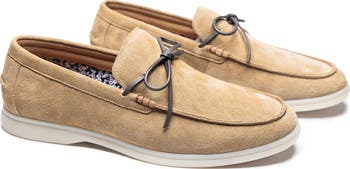 A patterned lining adds a fun flourish to a signature loafer made from supple suede to elevate casual or special-occasion looks.