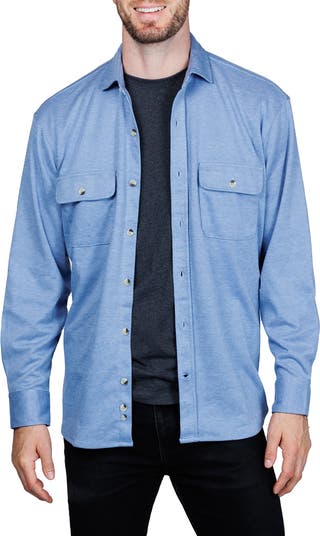 Perfect for layering or wearing alone, this melange knit button-up shirt is crafted with a softly, textured finish.