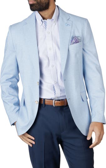 Paisley satin fabric adds a pop of color to the lining and handkerchief of a sport coat cut from mini shadow plaid fabric in a modern silhouette.