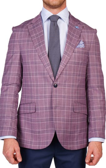 This textured, yarn-dyed shadow plaid two-button sport coat features a boldly patterned lining that matches the handkerchief, adding striking personality to your dapper look.