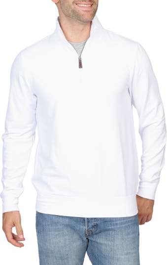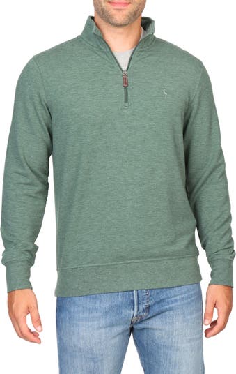 Bring cozy comfort to your casual collection with this quarter zip layering staple crafted from sueded fleece fabric.