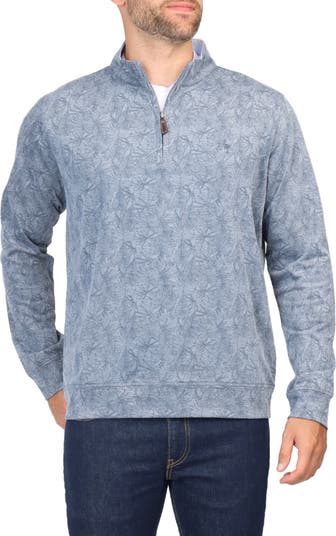 A tonal tropical print adds subtle vacation-inspired fun to this quarter-zip pullover made of a soft and comfortable micro-pique cotton-blend.