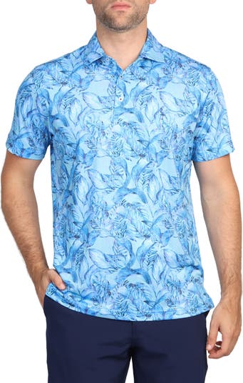 Enjoy a day on the green in this leaf-print performance polo constructed from moisture-wicking UPF 30+ fabric with comfortable stretch.