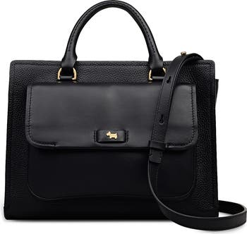 This satchel with a sculptural silhouette is crafted from grained leather and features a removable strap for versatile carrying options.
