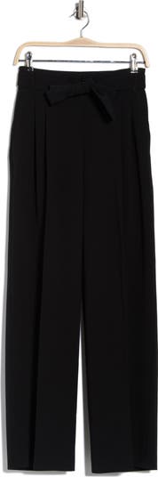 A tie belt and sharp pleats add a spot of polish to staple pants cut with straight legs.