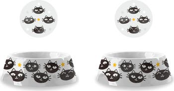 Add fun to your fur friend's eating schedule with this set of bowls that are covered in an adorable Matt the cat design.