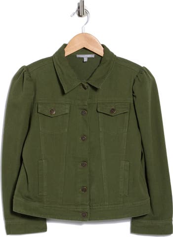 This classic denim jacket is cut from nonstretch cotton in an earthy hue so it elevates your all-season wardrobe staples.