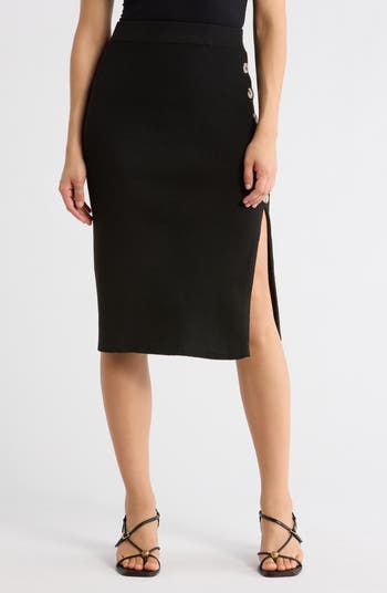 Elevate your weekend ensembles with this ribbed-to-fit skirt cut to a midi length and styled with horned buttons.