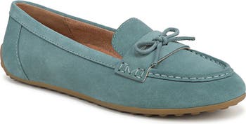 A dainty bow tops this leather driving loafer enhanced by built-in VIO MOTION footbed technology that offers contoured arch support, with shock-absorbing cushioning and a deep heel cup to provide stability and forefoot flexibility.