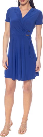 O-Ring Faux Wrap Jersey Dress