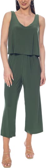 An overlay tank adds breezy appeal to this soft and stretchy cropped jumpsuit that can be dressed up for an event or down for off-duty .